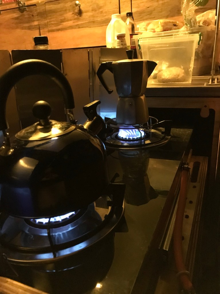 Long twilight evenings as the fire burns up are filled with the quiet satisfaction of time well spent. Darkness slowly creeps into the camp and the stars are clearly visible in the inky black night. Not a light to be seen in any direction. The milky way, that I have not seen so clearly for many years delighted us before the full moon rose in the sky and later peaked in through the Tripper window.