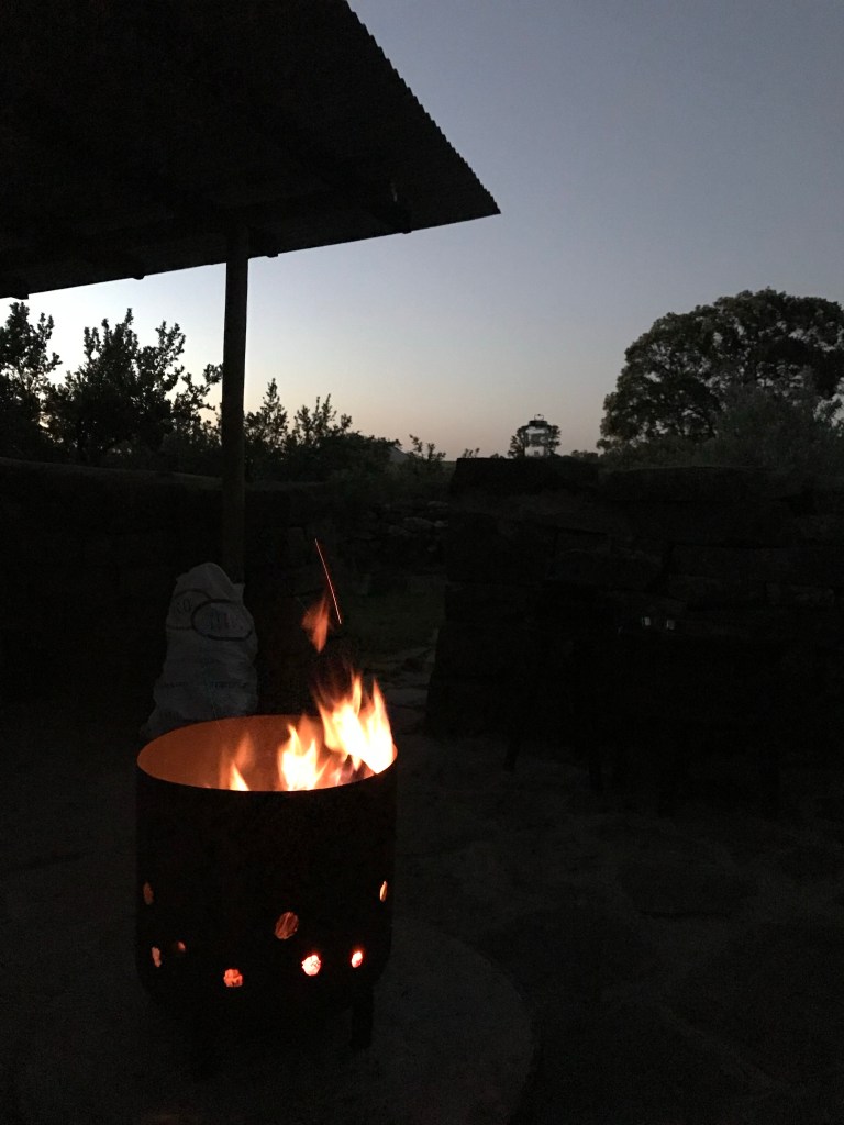 In the main camp area there are two stone shelters (one with a roof) that keep you comfortable and sheltered without blocking the amazing views. The roofless shelter shielding you at night for unparalleled star gazing. Twisted ‘OuHoud’ trees line each camp site and blow backwards and forwards as the gusts change direction.