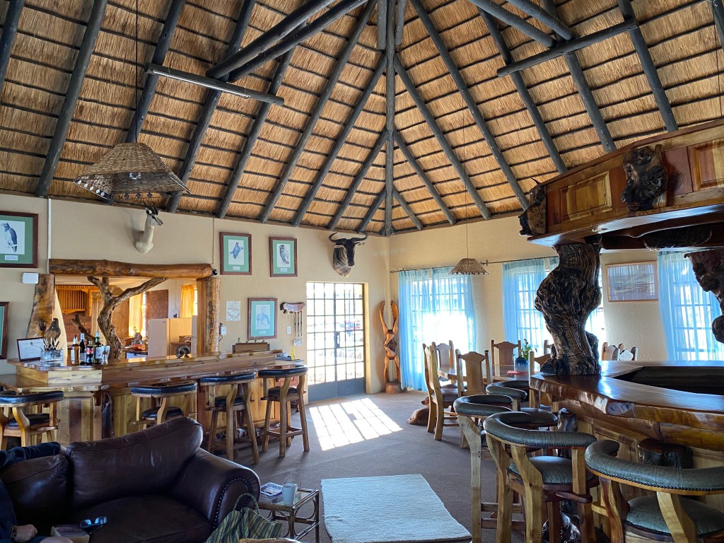 Communal lounge, kitchen, boma area & swimming pool. Panoramic views over Gariep Dam