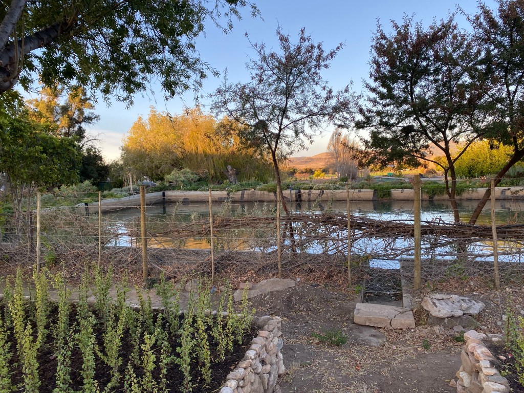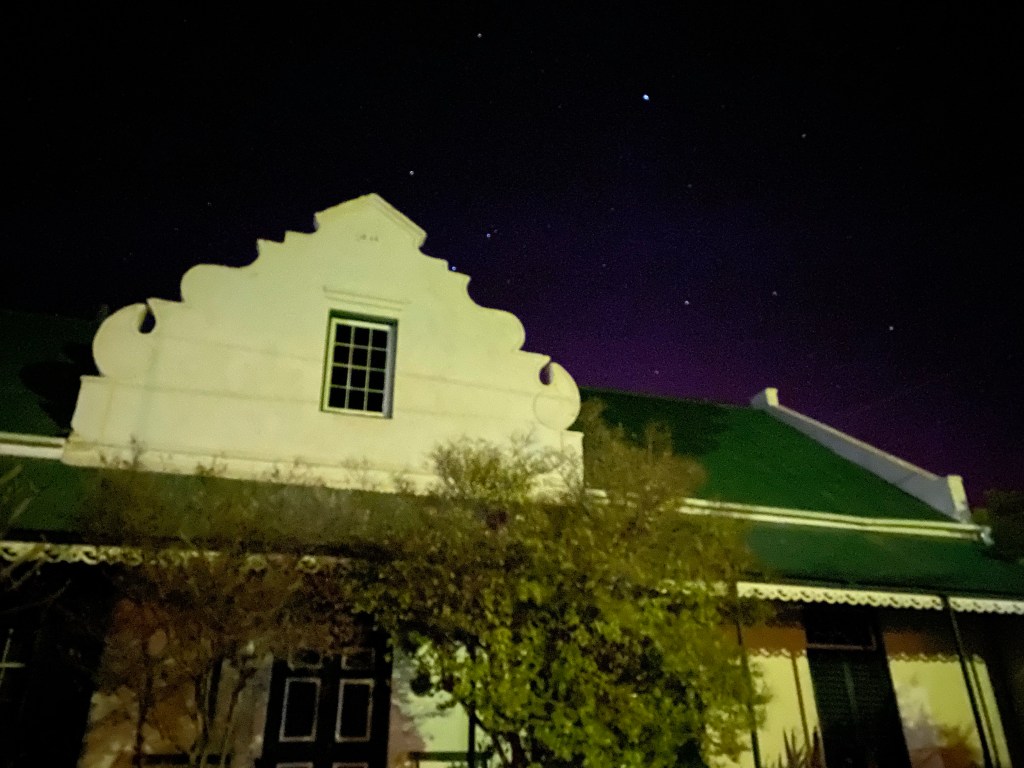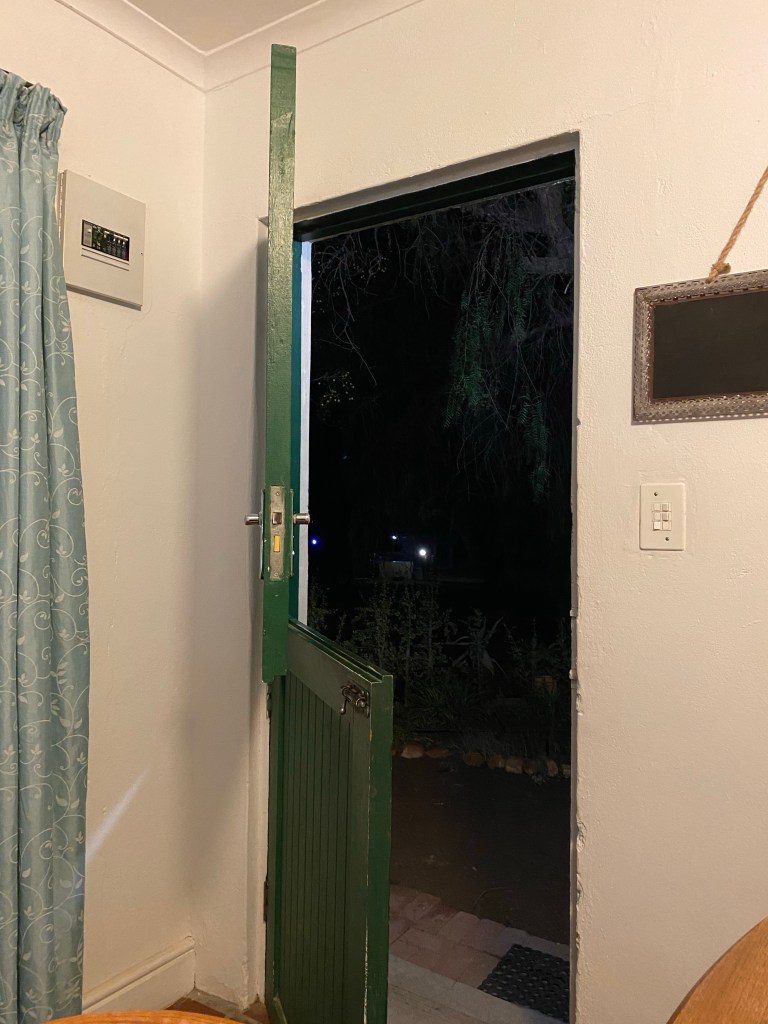 Wendy welcomed us back to Olienhoff with a smile – we first stayed at Mission Cottage on a cold and blustery night, our next stay was camping in our very new Tripper and this visit was in the cosy Kalamata cottage. Our sheltered braai area more than suitable for a chilly night.