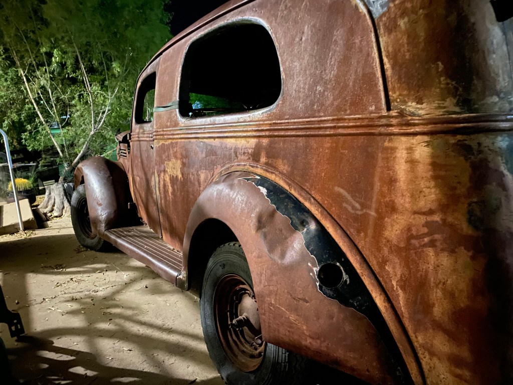 Walking the streets as the sun set. Spotted eagle owls gliding through the night. Scrumptious Lamb curry and venison pie at the Rude Chef. A bat eared fox slipping off the road in the car’s headlights. Our pup collapsed into her bed.