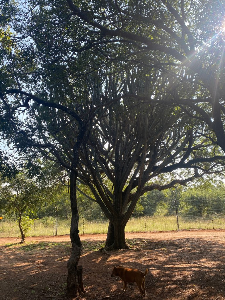 Magnificent maroela, fig, euphorbia, laventel koorsbessie bossies and many more – a tree lovers paradise – had me digging deeply through my memory boxes for the beautiful Latin names of our South African bushveld plants. I never saw one non-indigenous tree; a noteworthy achievement by the caretakers of this peace of heaven.